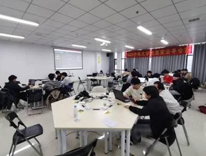 学员们以小组为单位,在安全可控的环境中开展渗透测试实战,从信息探测到漏洞利用,从权限提升到痕迹清除,完整复刻网络渗透全流程。同时,冬令营还设置了CTF攻防模拟赛环节,红蓝双方学员展开激烈对抗,在攻防博弈中锤炼技术、提升能力,现场键盘敲击声此起彼伏,展现出浓厚的竞技氛围与钻研精神。另外,在每天的训练结束后,都会及时开展复盘,争取把知识全部消化,同时也会有表现优异的同学进行汇报分享经验。