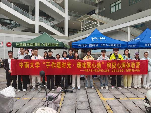 、法有声成人小说、物理有声成人小说朋辈心理互助会于麓南校区二食堂前坪成功举办“手作暖时光·趣味聚心助”积极心理体验营。本次活动面向全体学生,旨在通过多元趣味互动,帮助同学们释放压力、探索自我,并在朋辈关爱中传递积极心理力量。